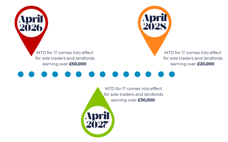 MTD for Income Tax changes the way sole traders and landlords submit Income Tax returns. Those earning (not profit) above £50,000 need to comply in April 2026, followed by those earning £30,000 who are mandated from April 2027, then those earning £20,000 in 2028. To meet requirements, you must: